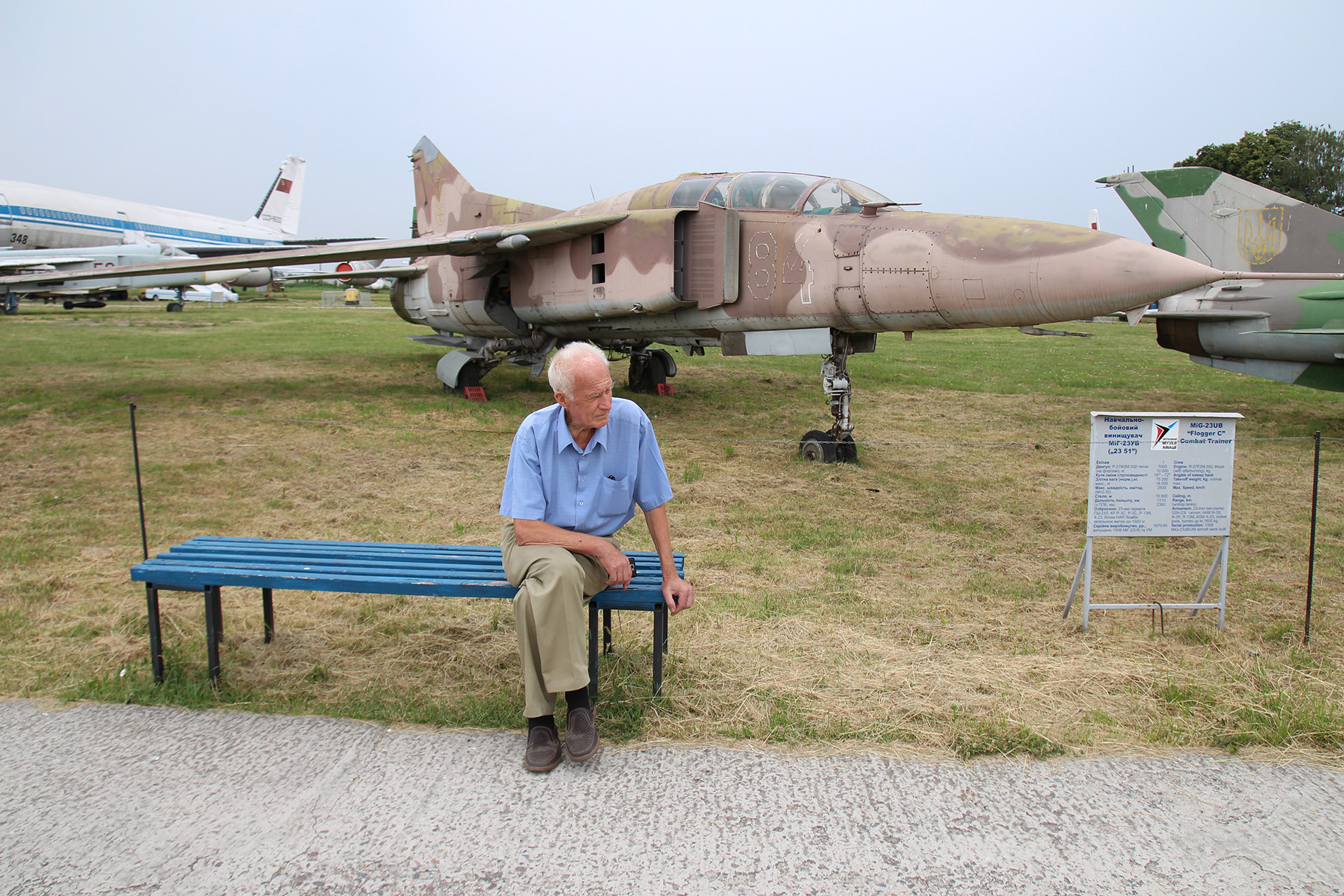 Білосніжна сивина, акуратні вуса та окуляри в тонкій оправі – киянин Валерій Романенко, походжаючи між списаними літаками, схожий на професора. Його головна пристрасть – авіація.