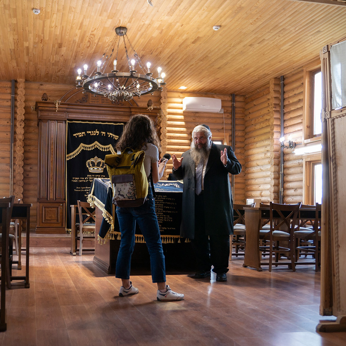 – Це унікальна синагога, яку ми побудували з нуля, – Розповідає Моше. – В Україні нових синагог практично не будували – ремонтували старі. Але ми не просто відбудовували… Я попросив архітектора намалювати так, як було колись. І ось вона вийшла – така дуже тепла і дуже старовинна!
