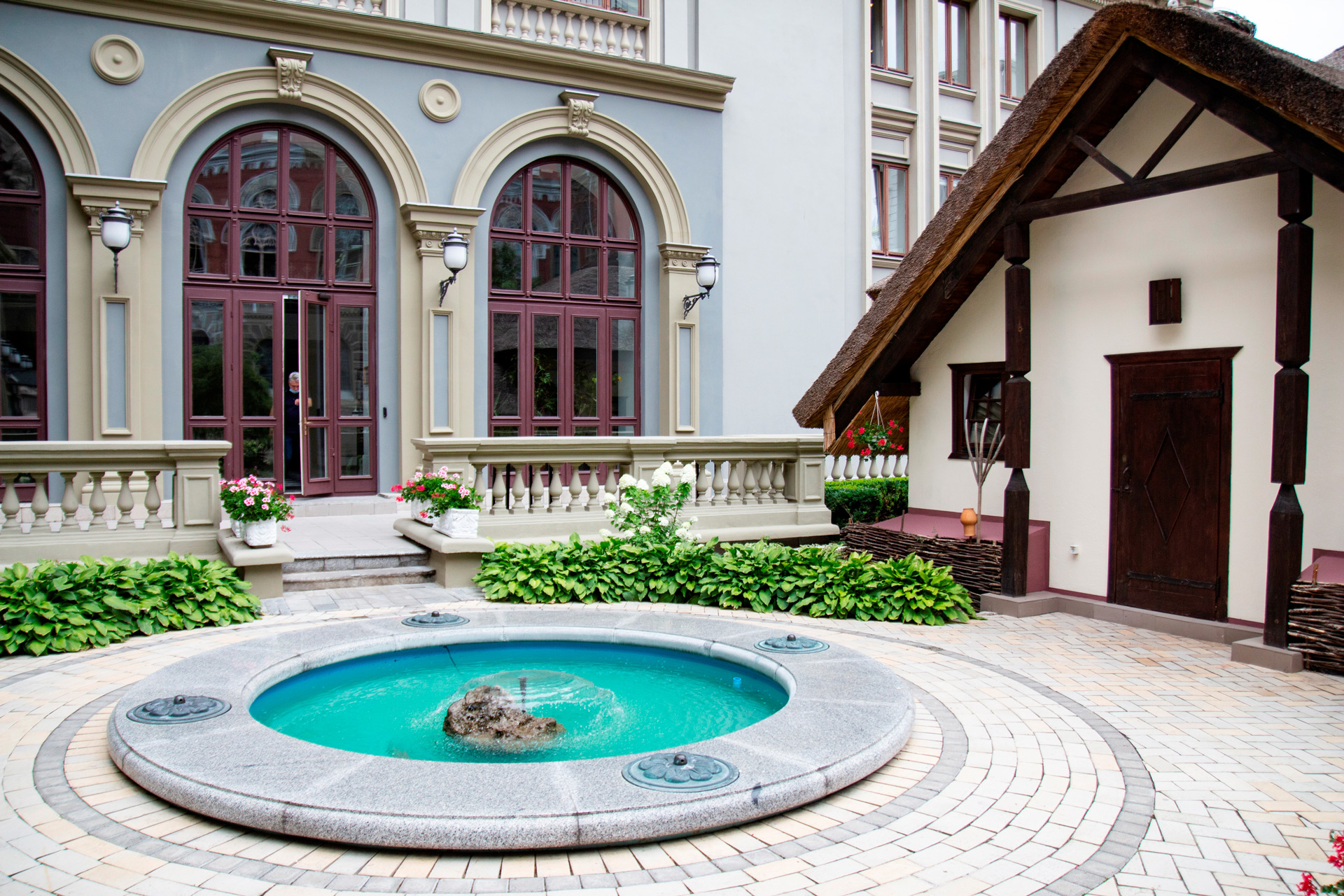 Стоячи у внутрішньому дворику Нацбанку, прихованому від роззяв, під дзюрчання фонтану Роман Рілов пояснює, чим була ця частина Києва 150-170 років тому.