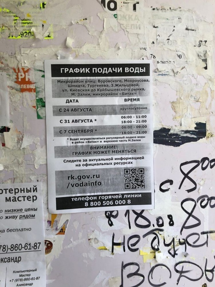 "В моём микрорайоне вода есть круглосуточно, но мы скорее исключение, – розповідала на першому тижні обмежень жителька Сімферополя Юлія. – Не думаю, что для Украины большая тайна – ужасная изношенность сетей. Они были проложены во времена СССР и с тех пор ни разу ничего не было в Крыму сделано в плане модернизации коммуникаций. Маемо, шо маемо".