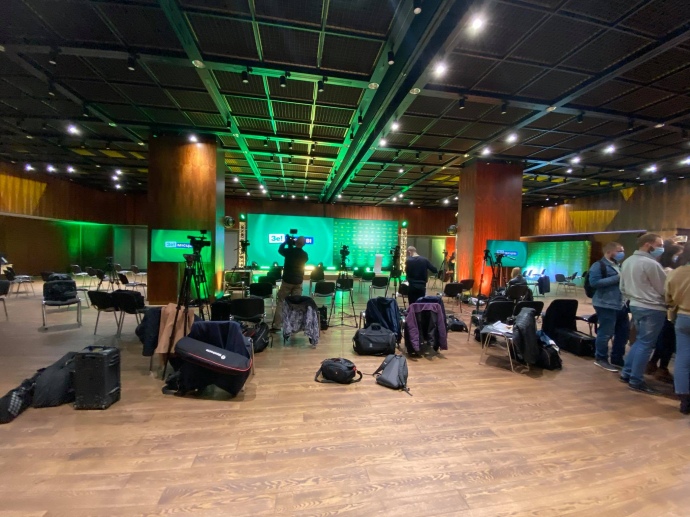 Раніше впродовж дня виборів журналісти могли пограти в настільний теніс чи хокей, брати участь у конкурсах з ведучим Артемом Гагаріним, поїсти бургерів, випити пива на барі…