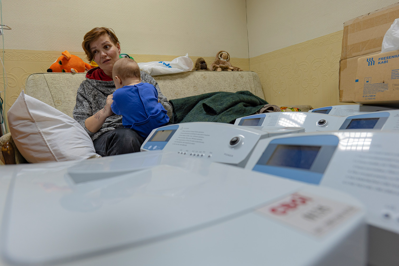 ─ У неї сині губи, вона помирає, можна сказати… ─ дуже спокійно говорить Женя. ─ Я сподіваюсь, що це (киває в бік концентратора та СІПАП-апарата – УП) її реанімує.