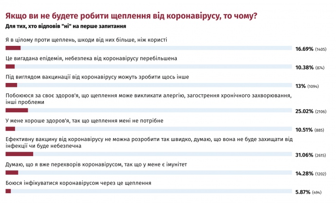 Три головні причини відмови від вакцини – невпевненість в її ефективності, побоювання за власне здоров’я через наслідки вакцинування, несприйняття щеплень загалом.