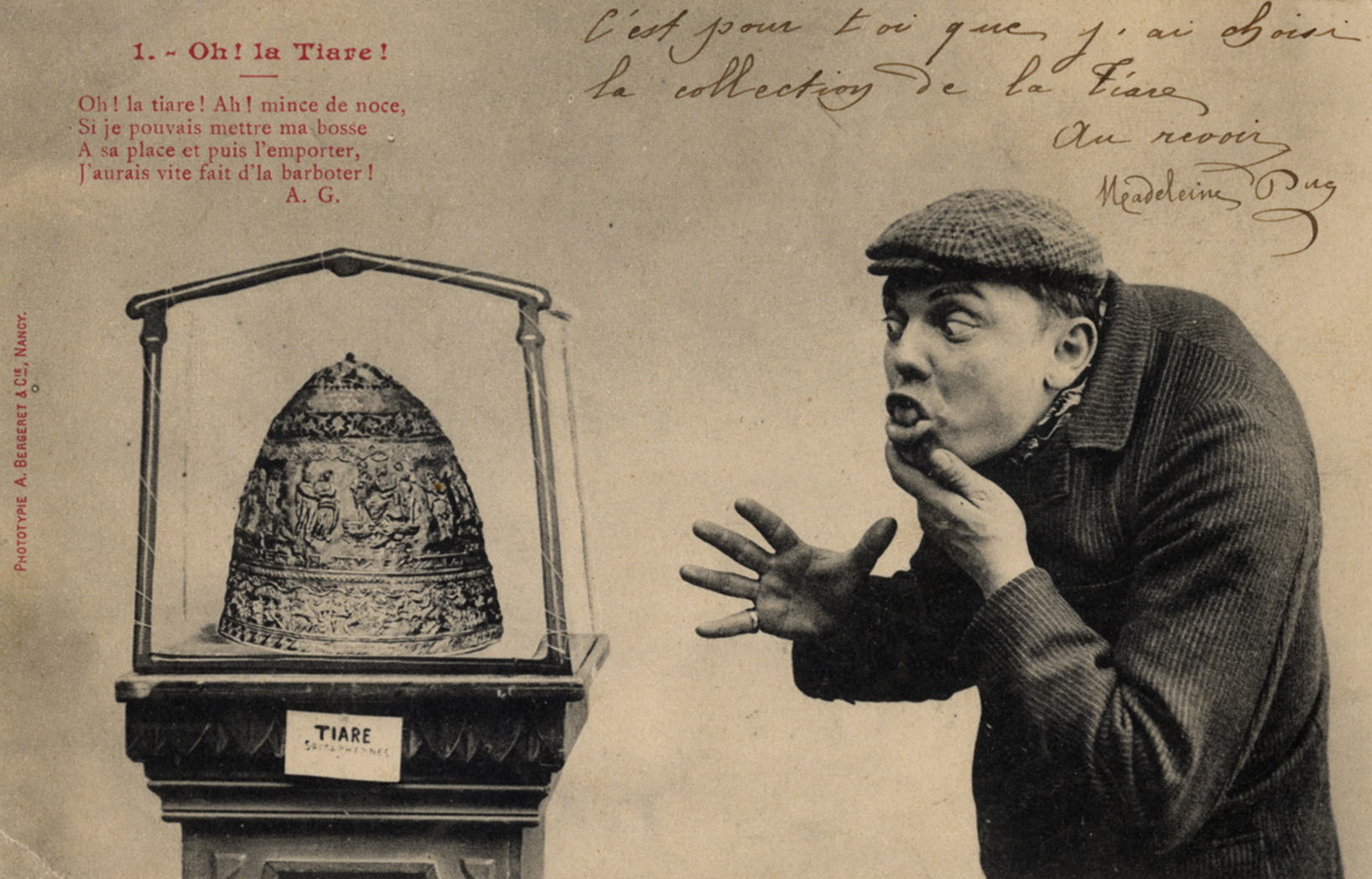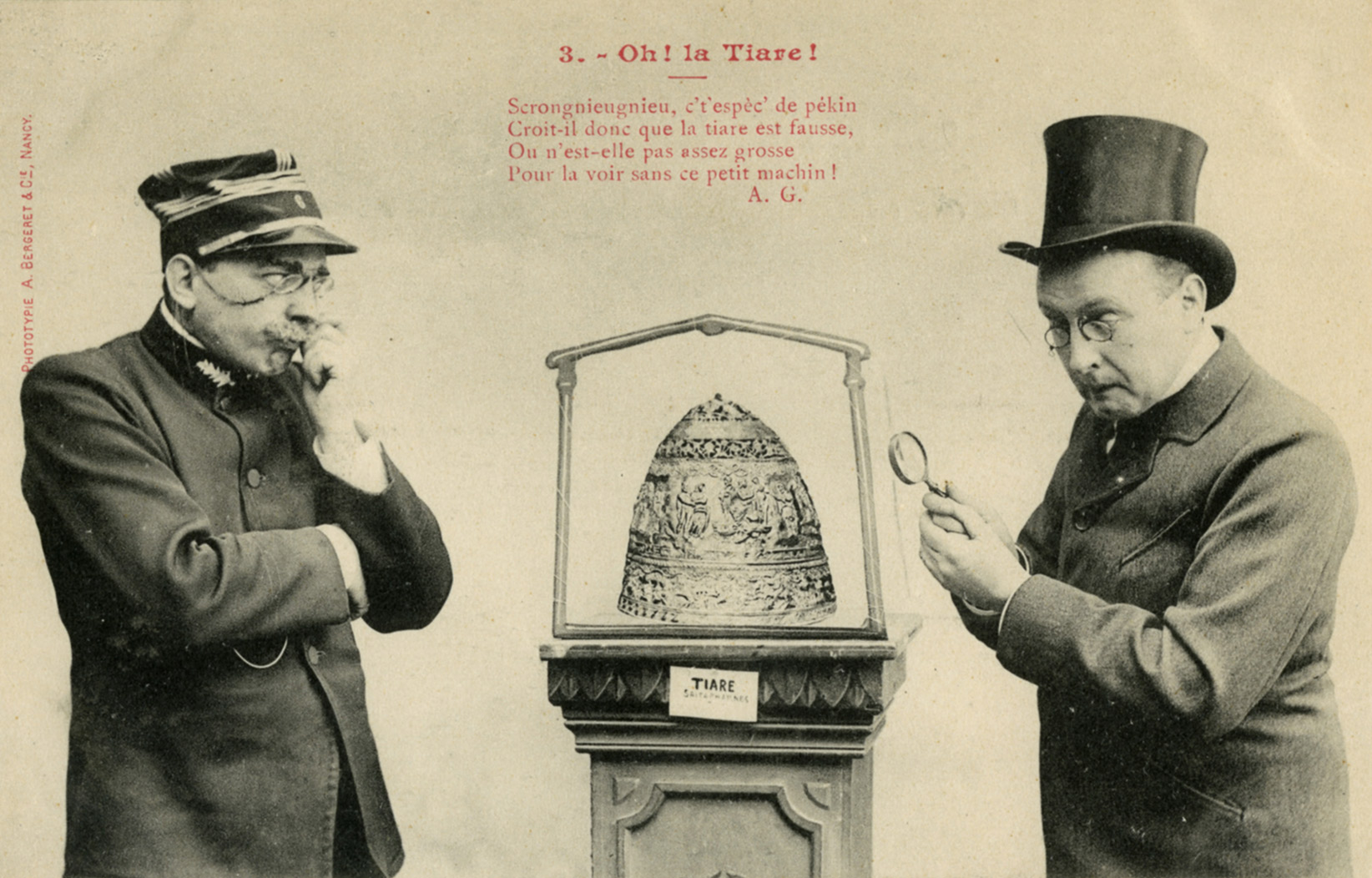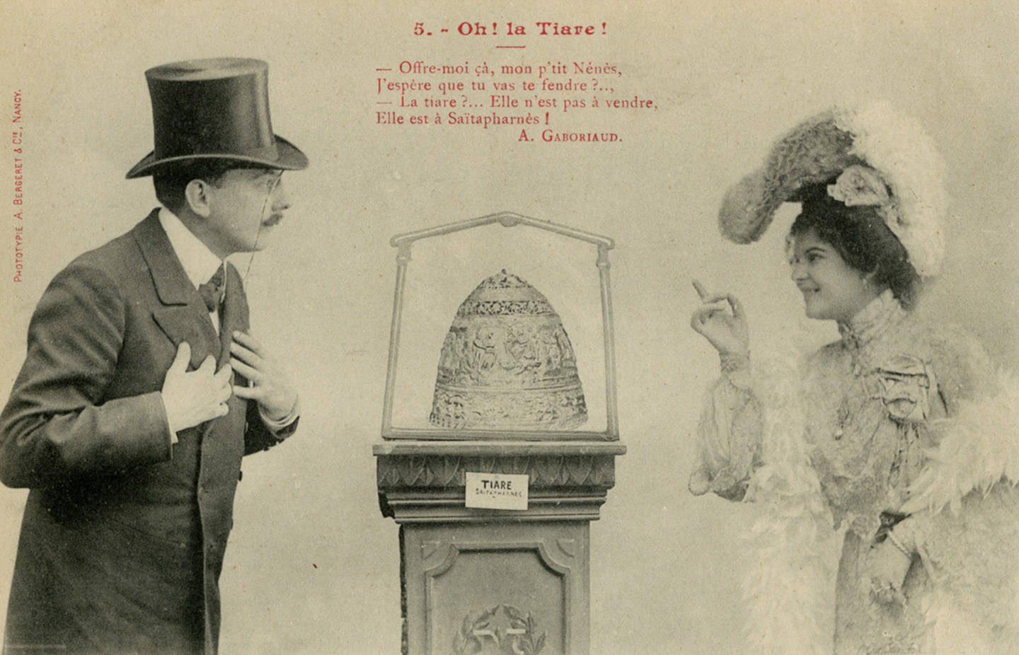 За якоюсь найлютішою з усіх можливих іронією долі, сенс котрої дійде до французів тільки за сім років, вперше на публіку Лувр виставив тіару 1 квітня, в День дурнів.