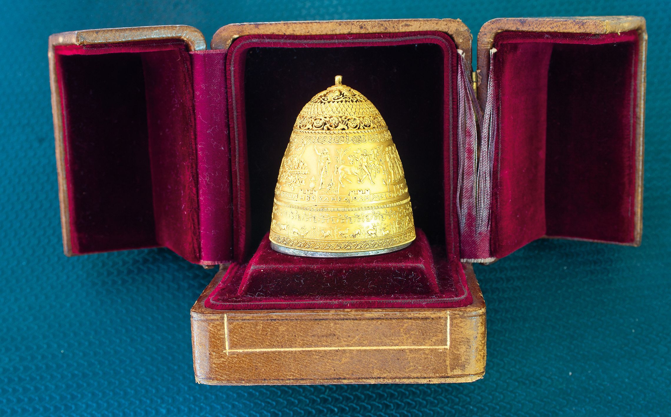 Куполоподібний шолом-корону Ізраїль Рухомовський карбував з тонкої золотої пластини вагою 486 грам, яку дав йому Шепсель Гохман. Врешті, за словами самого ювеліра, "вийшла свого роду корона у формі високої гострої ярмулки".