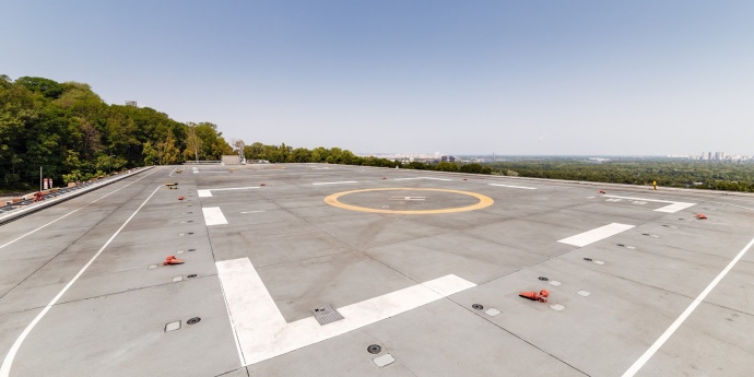 Вертолітний майданчик з назвою "Дніпро-1", з якого колись починалось все це різноманіття і який мав бути основним об’єктом будівлі, тепер представляють як "відкриту виставкову зону".