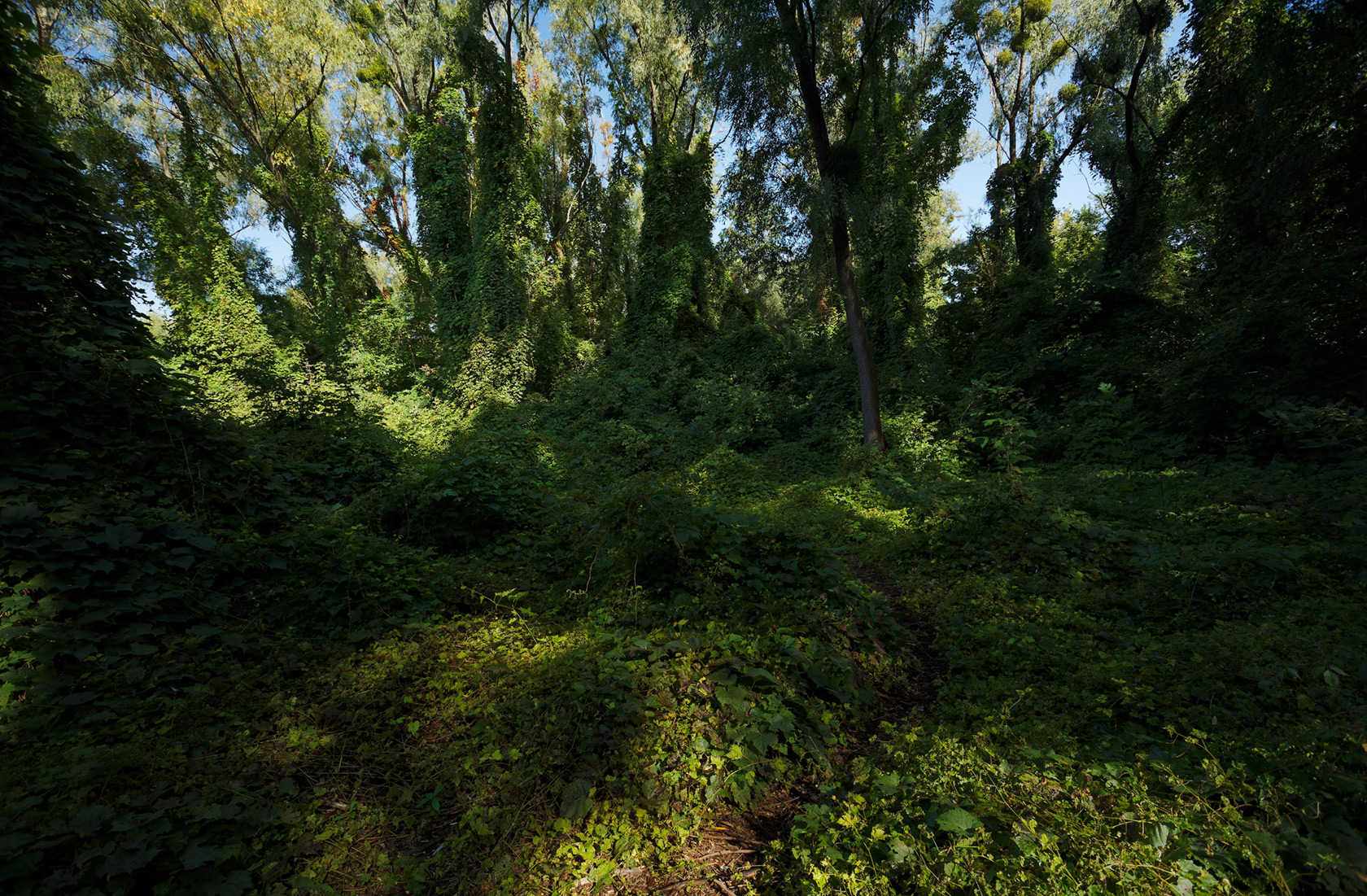 Це невелика місцина на початку Горбачихи, де дикий виноград, розстеляючись по чорній вологій землі й тягнучись вверх по високих деревах, створив ніби окрему систему. Справжні хащі за 30 хвилин ходу від станції метро "Лівобережна".