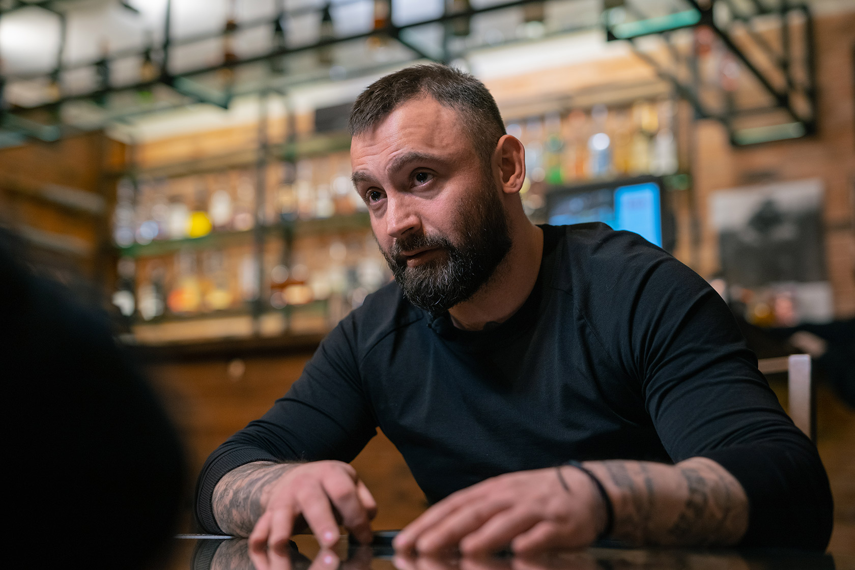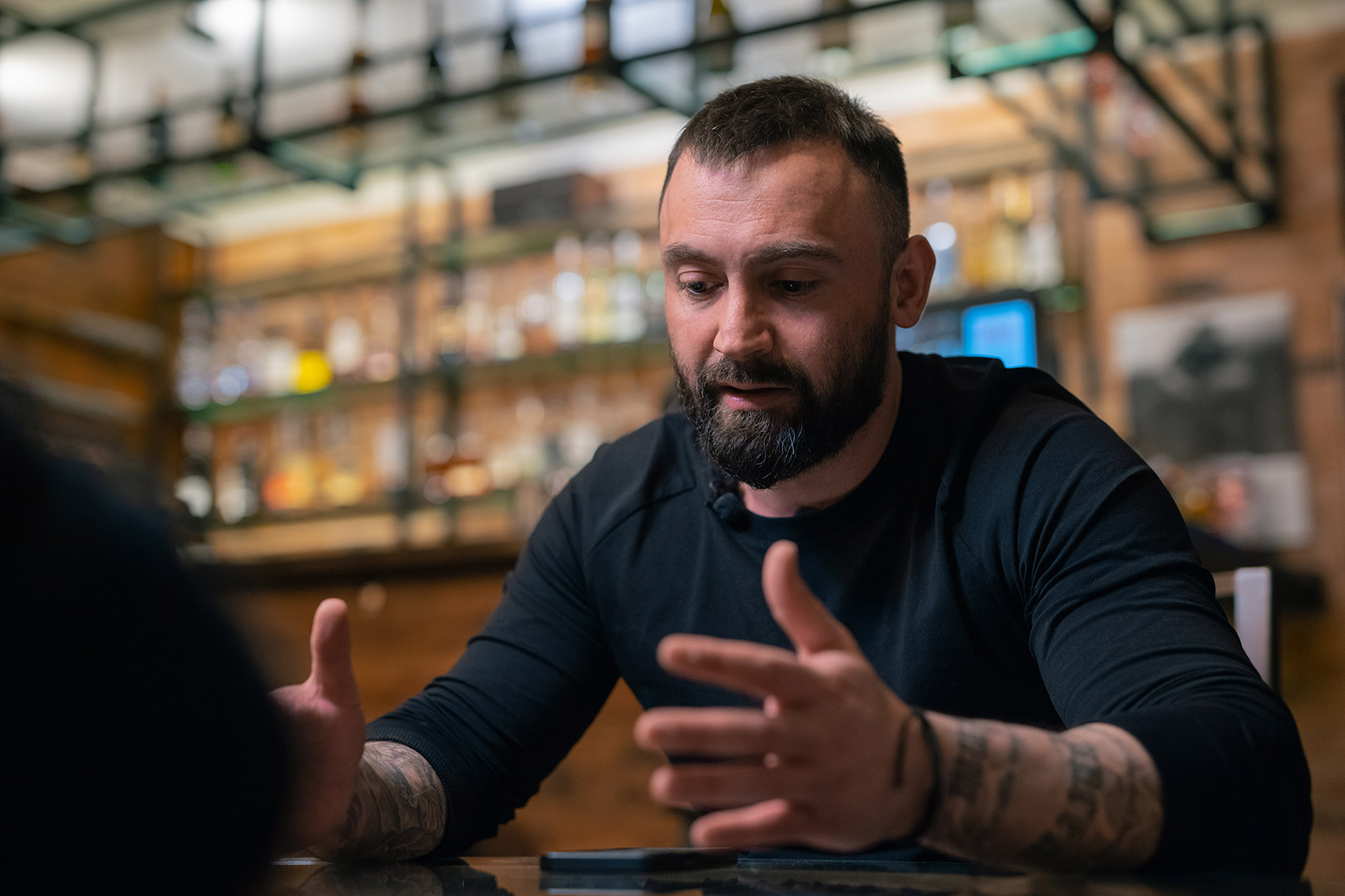 Кілька тижнів тому я провів великі збори. Запросив військового психолога, мого друга Андрюху Козинчука, дуже розумного. Серьогу Гусовського, бо він має багато особистих історій, має майже п'ятсот осіб штату. Запросив сімейного лікаря Юру. І капелана свого батальйону, отця Сергія. Посадив їх, посадив команду, кажу: "Все, чоловіки, жінки, будемо розмовляти! Демократія, свобода. Будемо вести дискусію, тільки методом фактів".