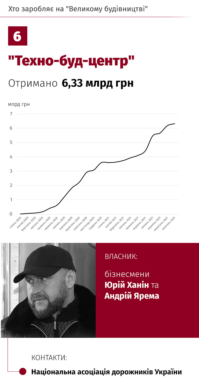 "Техно-буд-центр" є одним з батьків-засновників НАДУ. Однак фірмі так і не вдалось вискочити далеко за межі свого регіону. Компанія є безумовним монополістом на дорожні підряди лише на Тернопільщині. Відтак її доходи генеруються тільки завдяки тому, що Укравтодор направляє значні кошти у цей регіон.