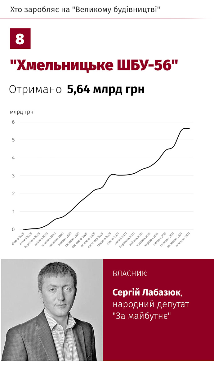Доходи хмельницьких будівельників суттєво зросли під час "Великого будівництва" – так само, як і у фірми "ПБС" іншого "замайбахівця" Шевченка. Але, на відміну від однопартійця, Лабазюк займає обережну публічну позицію.