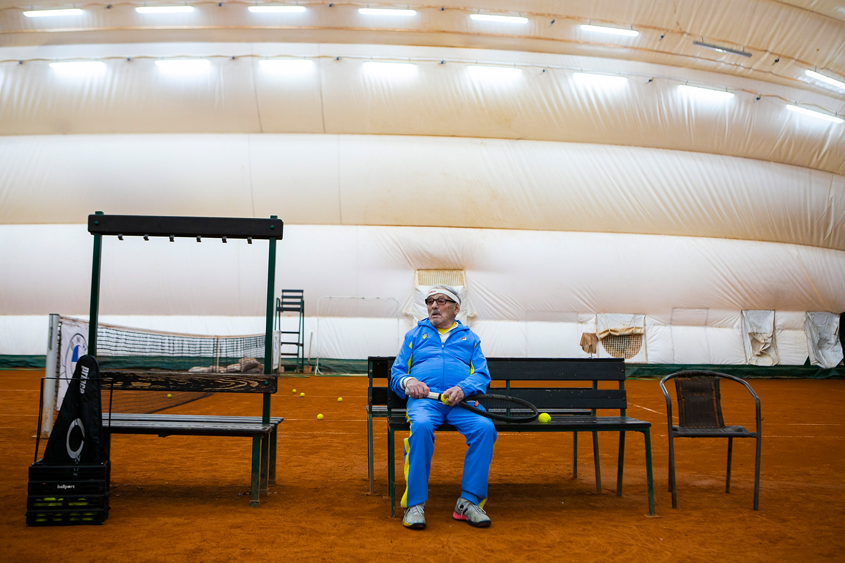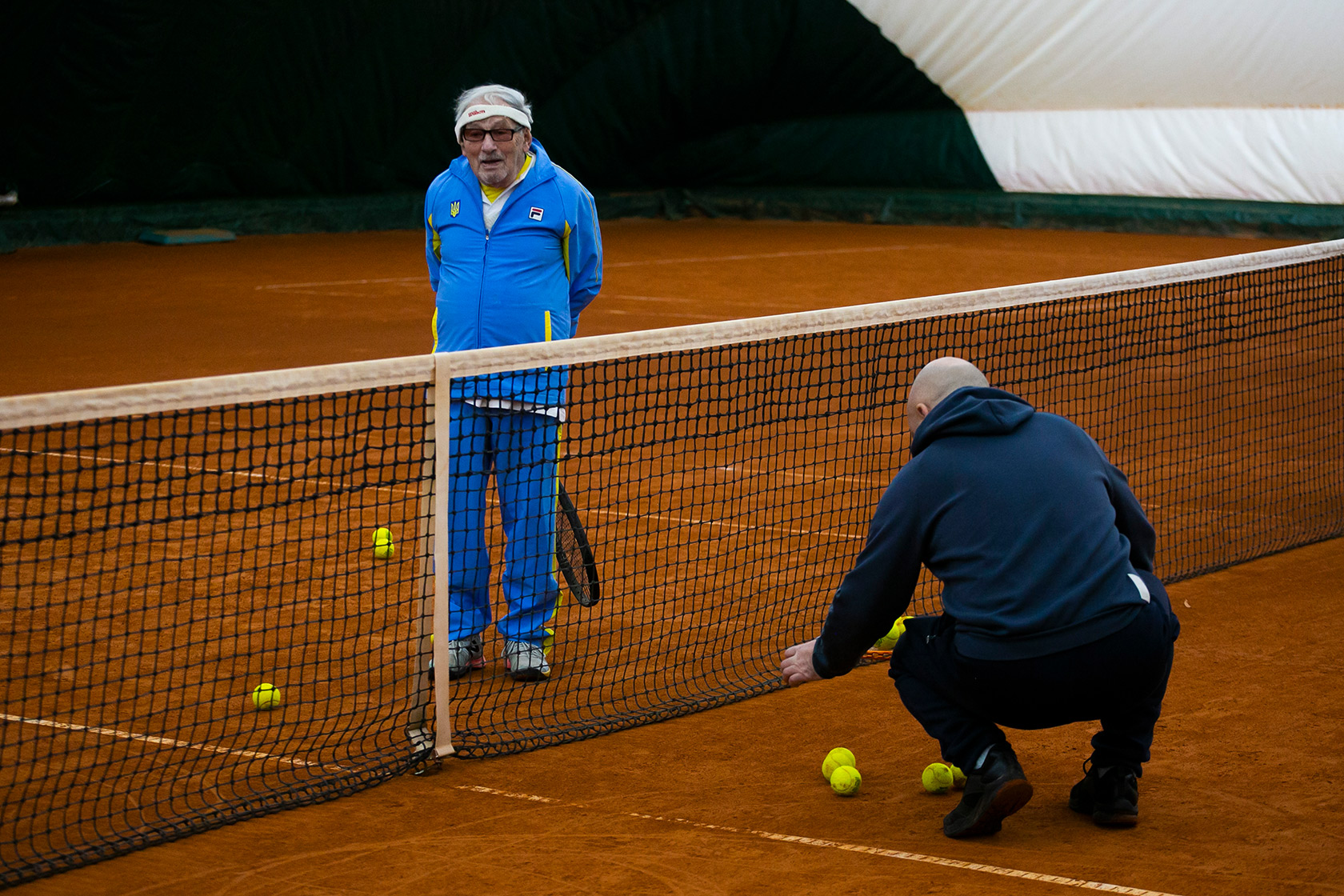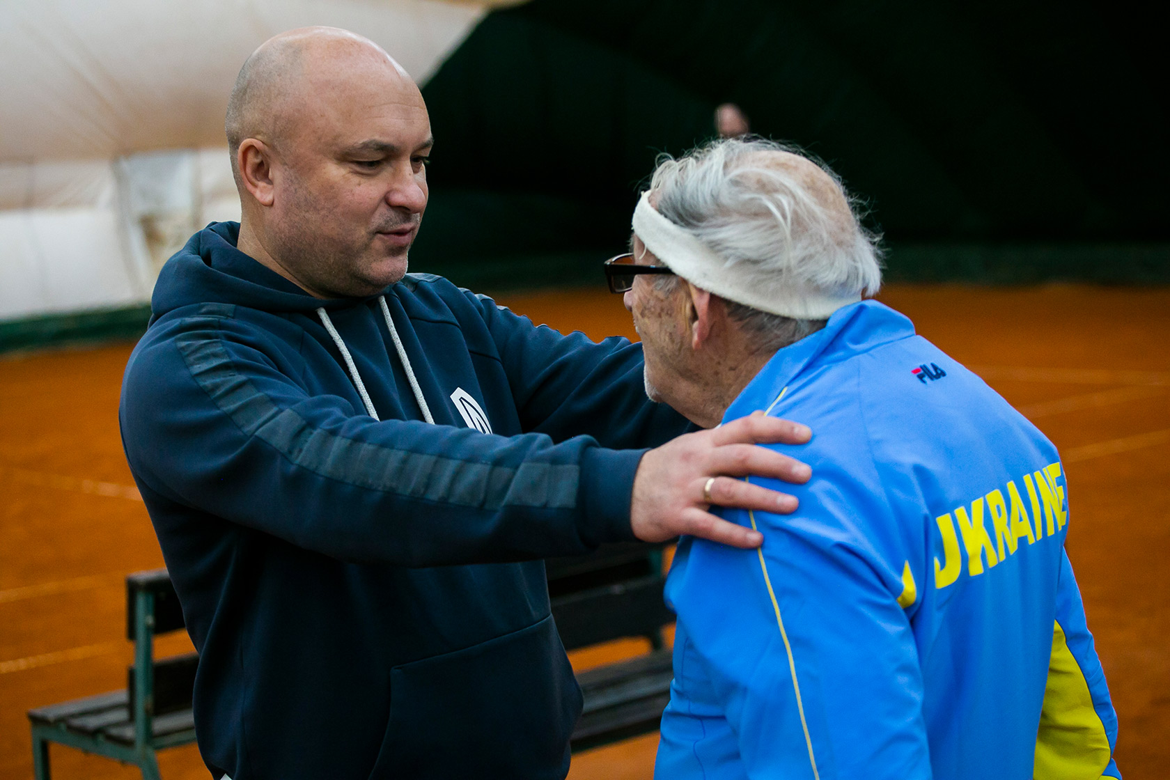 — Порядок? — спрашивает он у своего спарринг-партнера, члена президиума Федерации тенниса Украины Всеволода Кевлича.