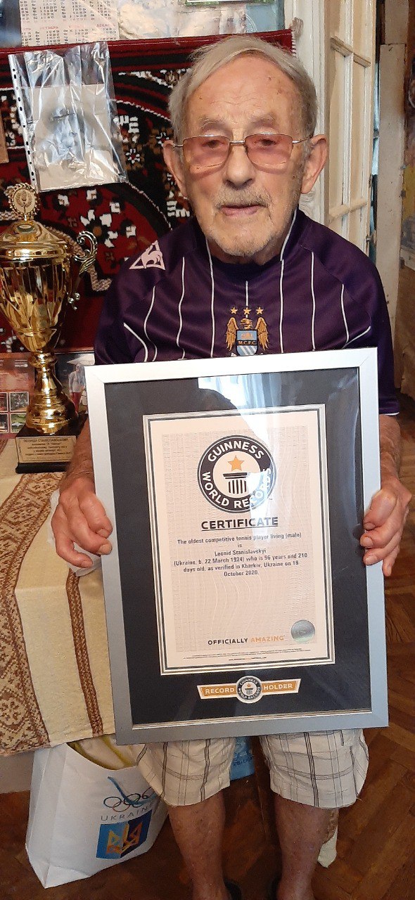 В 2017 году Леонида Яковлевича внесли в Книгу рекордов Украины как старейшего игрока в теннис. А этим летом Станиславский получил сертификат книги рекордов Гиннесса как самый возрастной теннисист мира, который участвует в соревнованиях.