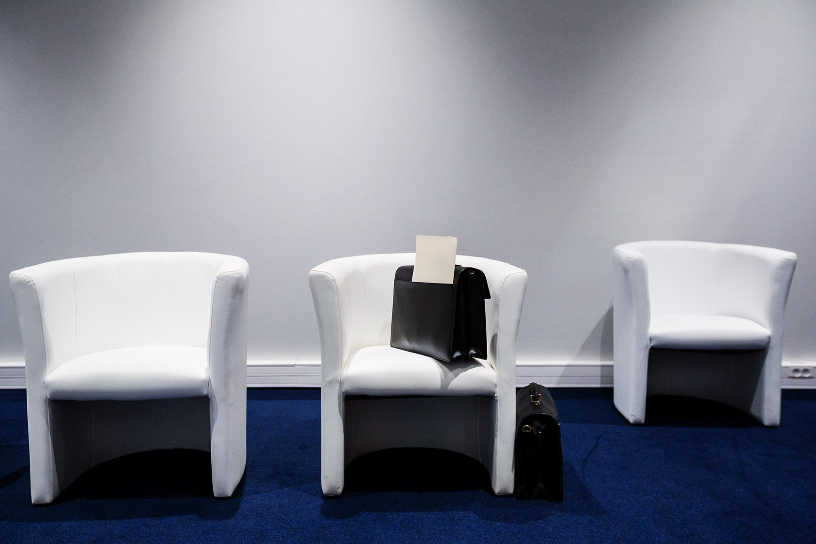 Серія відкриває зачинені двері до кімнат з перемовин – мінімалістичний інтер'єр, в яких розміщені лише практичні речі; кольори, які не відволікають увагу; квіти, мов би нагадують про існування паралельного, живого світу; практична інфраструктура з дешевою, масової фурнітурою – саме в таких тимчасових просторах ведуться найважливіші дискусії між представниками різних країн, вирішуються долі мільйонів та розробляються політичні плани на майбутнє.