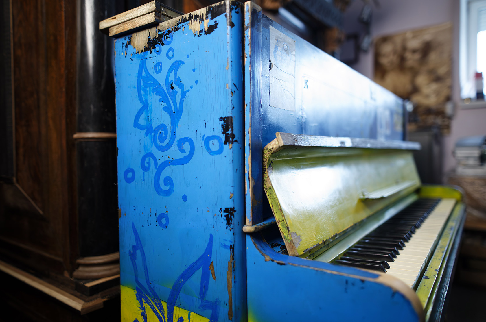 Для мене синьо-жовте піаніно – аристократ, який достойно відслужив своє, в нього поношений сюртук, він подряпаний, але при цьому лишається аристократом до мозку кісток.