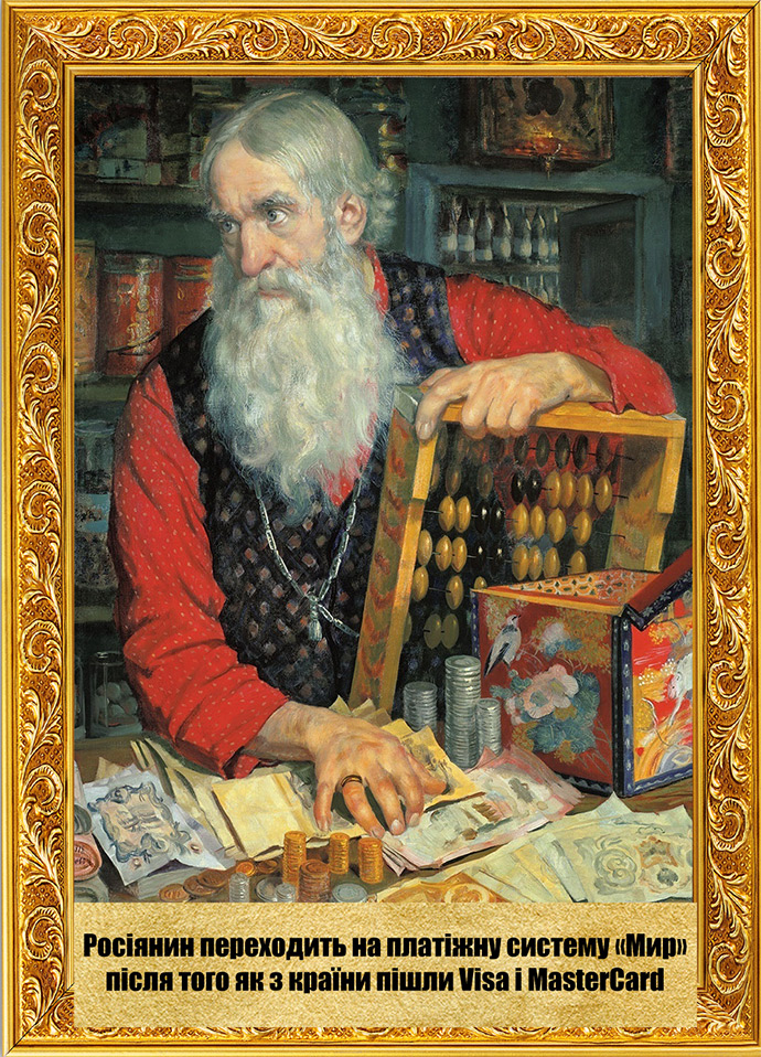 Після того, як платіжні системи Visa та MasterCard зупинили прийом платежів за картами російських банків, у росіян залишається платіжна система "Мир". Її карти працюють у Туреччині, В'єтнамі, Вірменії, Білорусі, Казахстані, Киргизстані та Таджикистані та невизнаних Південній Осетії та Абхазії. І, звичайно, кеш – як на картині "Купець (старий з грошима)" Бориса Кустодієва.