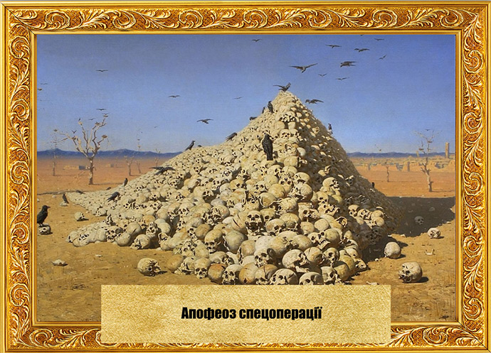 Очікуємо на офіційне перейменування картини Василя Верещагіна "Апофеоз війни" на "Апофеоз спецоперації", роману Льва Толстого "Війна та мир" на "Спецоперація та мир", а також (про всяк випадок) "Велика вітчизняна спецоперація".