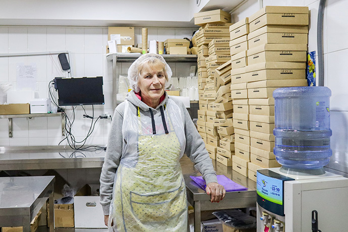 В окремій залі також готують і фасують обіди. На час війни в цеху лишилось 10 людей, дехто ночує прямо на робочому місці.
