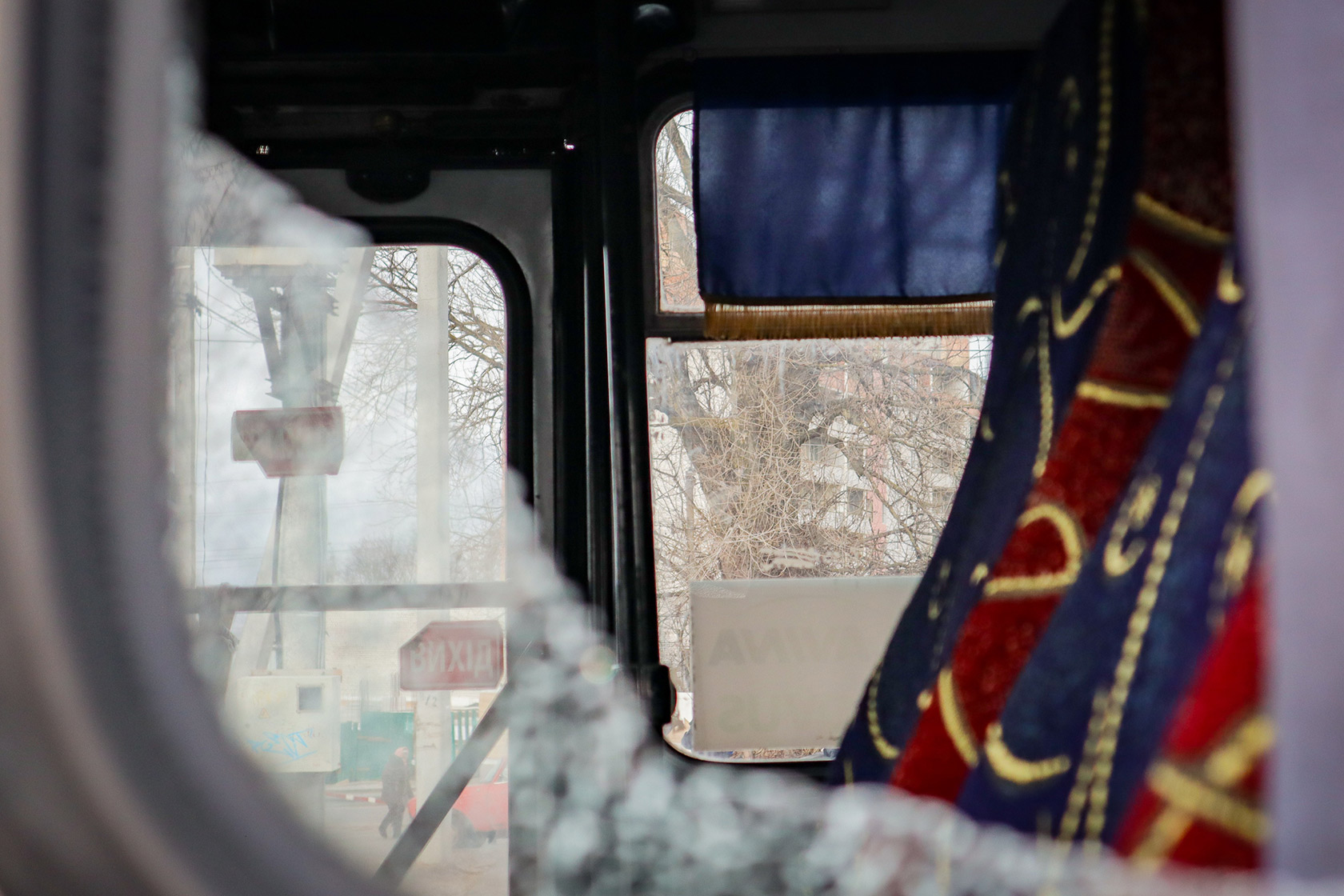Він приїхав до Білогородки на розтрощеній від обстрілів і вибухів маршрутці "Гостомель-Буча-Святошин" з донецькими номерами.