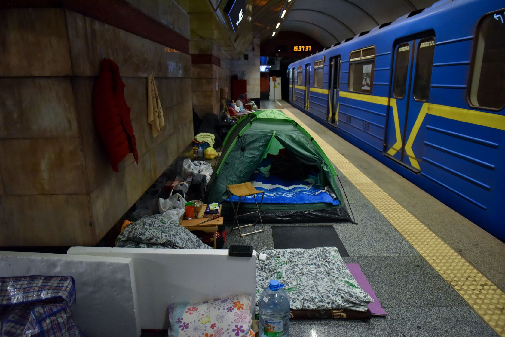 За неповний місяць війни підземний вестибюль став "спальною колонією" мешканців навколишніх будинків (переважно "хрущівок"), які ночують тут.