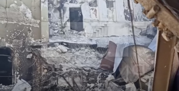 Російські окупанти показали відео зі зруйнованого ними драмтеатру в Маріуполі, де від обстрілів ховались цивільні мешканці. Через постійні бойові дії робота незалежних журналістів у Маріуполі є майже неможливою. Це перші кадри зсередини зруйнованого театру.
