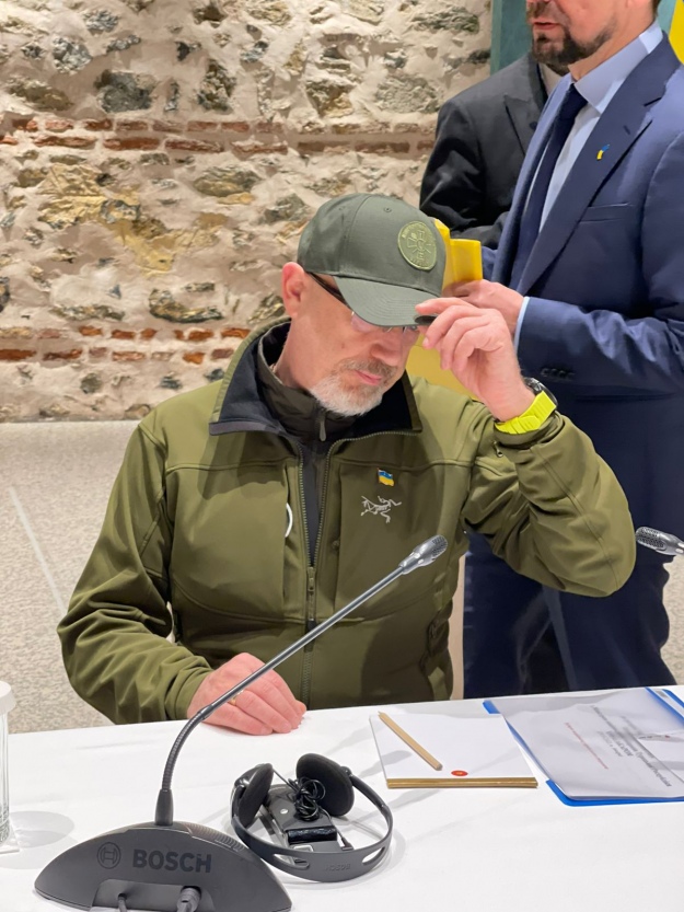 За столом перемовин від України: голова фракції "Слуга народу" Давид Арахамія, міністр оборони Олексій Резніков, депутати Андрій Костін і Рустем Умеров, радник голови ОП Михайло Подоляк, заступник міністра закордонних справ Микола Точицький, заступник голови ОП Кирило Тимошенко, генерал Олександр Кириленко, дипломат і колишній чиновник Олександр Чалий.