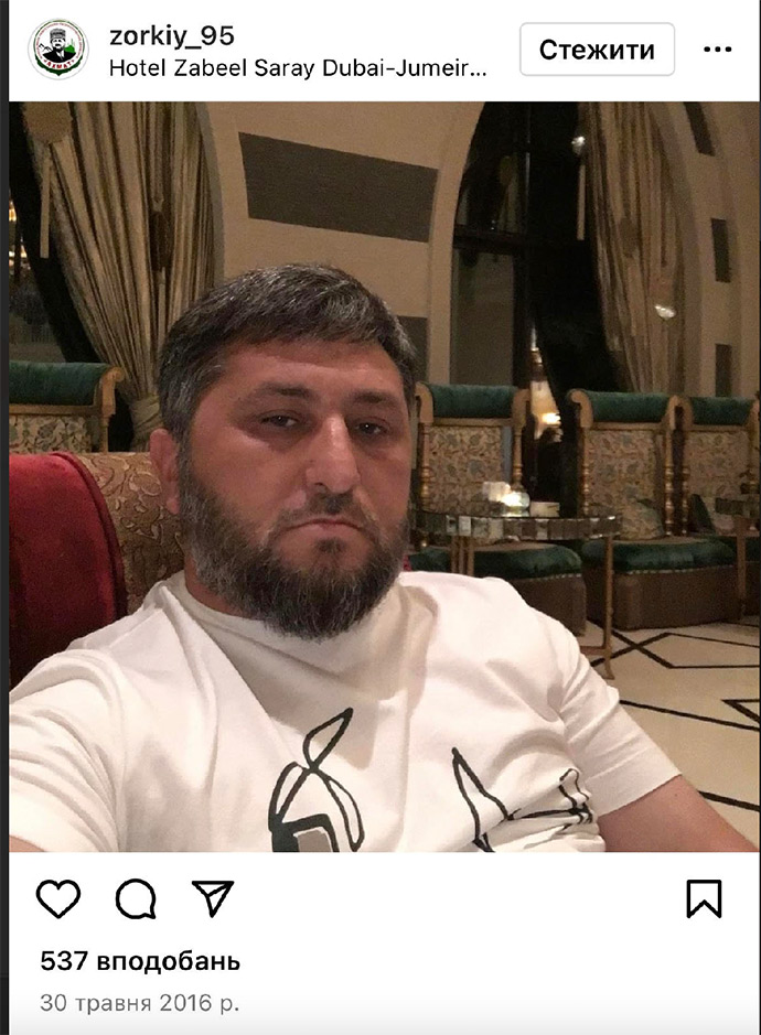Судячи з допису чоловіка, в якому він цитує Кадирова, який вітає його ж з днем народження, це – Заур Таймасханов. Він – старший офіцер підрозділу "СОБР Терек" Російської Федерації, а простіше кажучи – офіцер кадирівського спецназу.