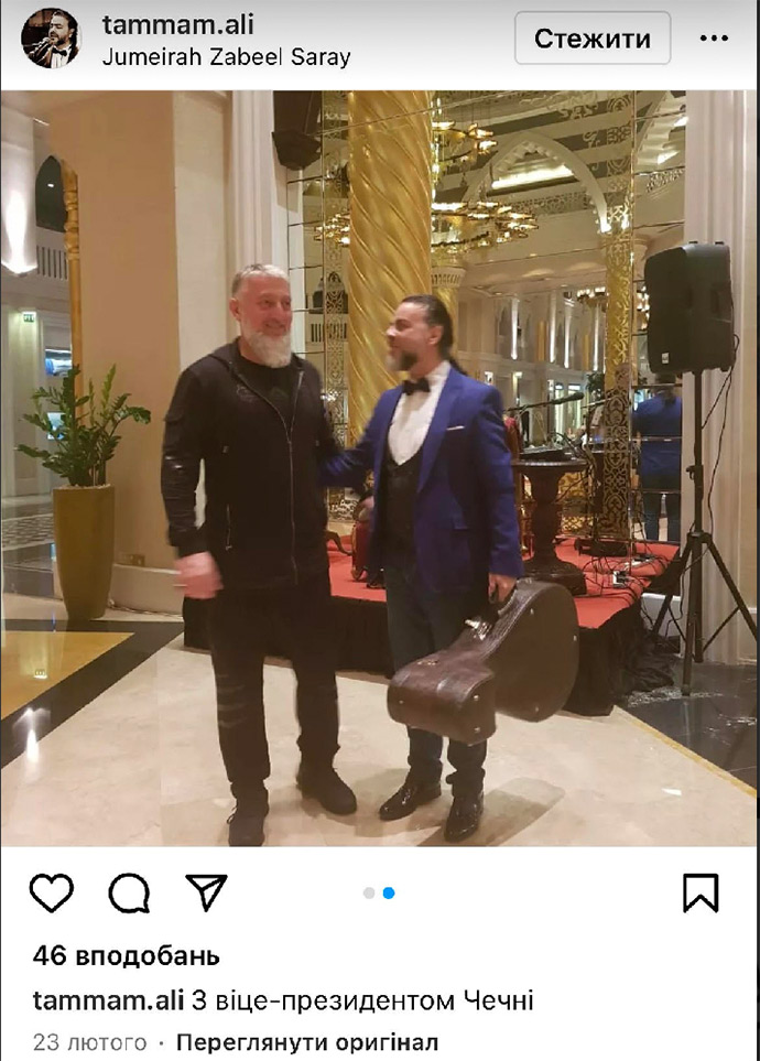 А ось 23-го лютого музикант з еміратів викладає в інстаграм фото, яке він підписав "з віце-президентом Чечні".