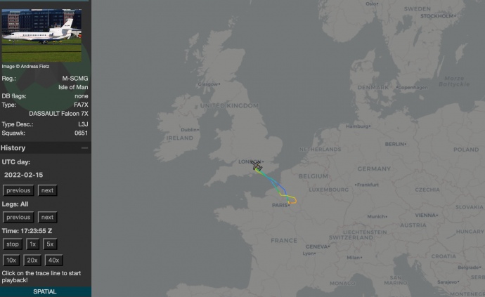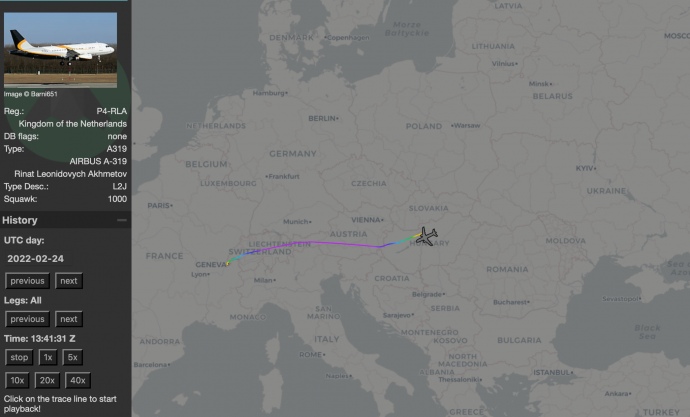 До 4 березня борт нікуди не літав, а саме в цей день вирушив із Лондона до словацького міста Кошице, яке розташовується біля кордону з Україною.