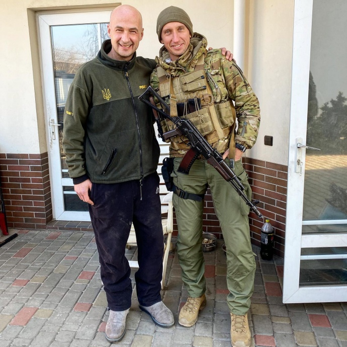 Але впевнений, що поява відомих людей в теробороні піднімає дух. Тут же не тільки я прийшов. Слава Вакарчук катається, Жадан у Харкові, президент сидить у Києві.