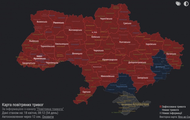 Ситуація в регіонах станом на 8 ранку 18 квітня:
