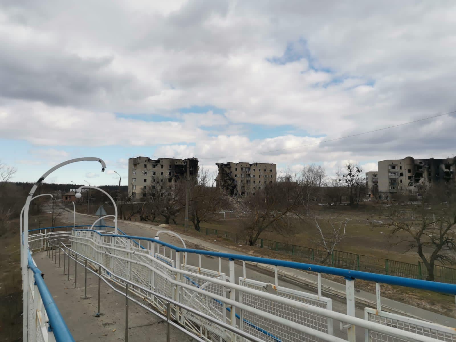 Пішохідний міст у північну частину міста був зруйнований повністю. Місцеві накидали там дверей, сіток – якось пройти таки можна було, ми навіть 90-річну бабусю за дві руки перевели.