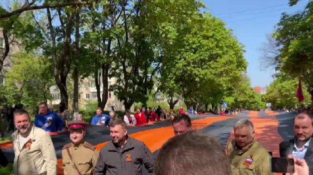 У частково окупованому Маріуполі росіяни розтягнули 300 метрів георгіївської стрічки та намагаються створити картинку для російського ТБ – і це на тлі поновлення штурму українських захисників на "Азовсталі" ❗