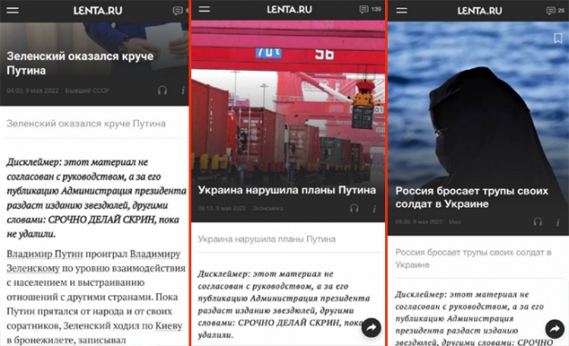 Утім протесту на довго не вистачило, працівники "Лента.ру" уже замінили тексти в новинах 🙄