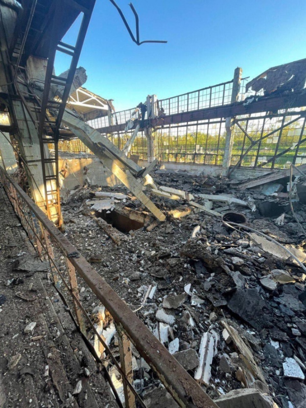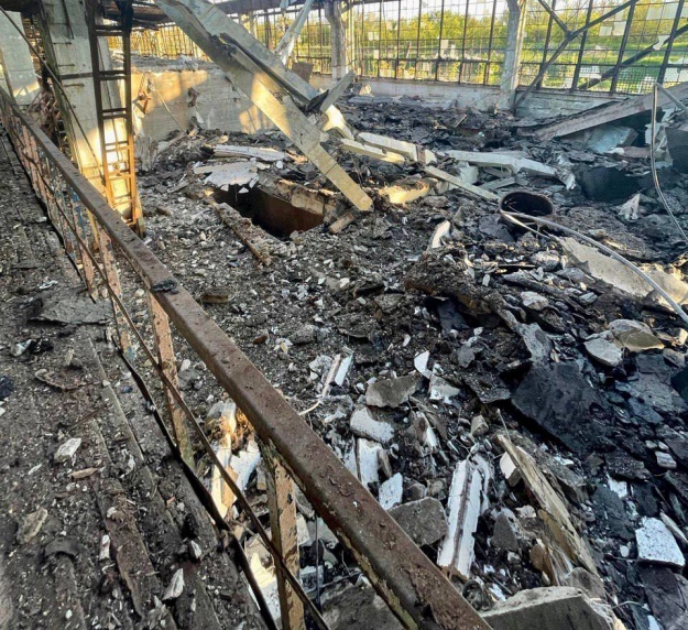 На світлині Запорізької ОВА показані руйнування на об'єкті в Запоріжжі.