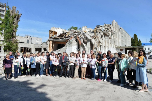 Біля Житомирського ліцею №25, який російські війська розбомбили у березні, провели своєрідний "останній дзвоник" – прощанння із будівлею. Акцію зорганізували батьки учнів, випускники та працівники навчального закладу. На відео учасники заходу у вишиванках та з синьо-жовтими стрічками вигукують "Віват ліцей".