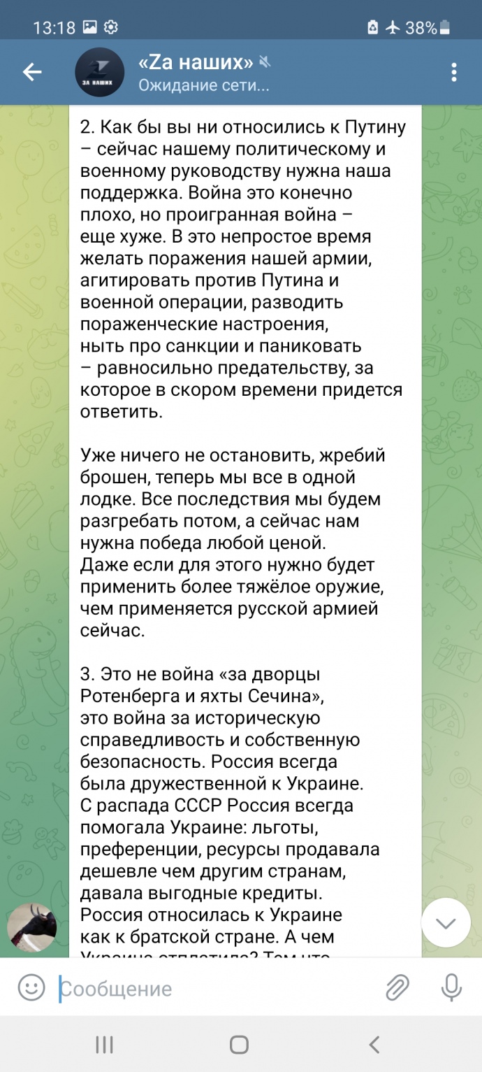 Періодично у чат надсилають пропагандистські матеріали, які покликані мотивувати військових воювати проти України.