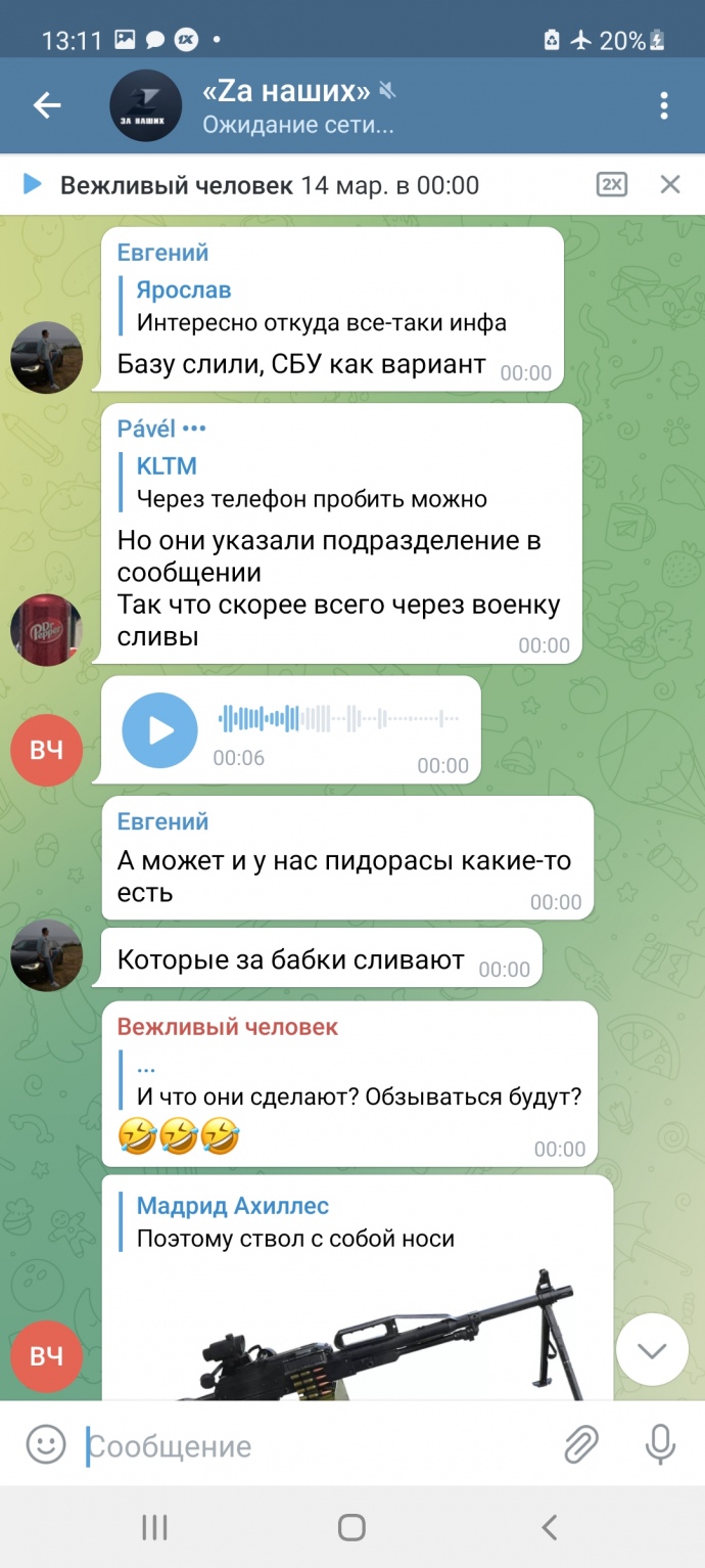 Також у чаті обговорюють, що особисті дані може зливати хтось зі своїх.