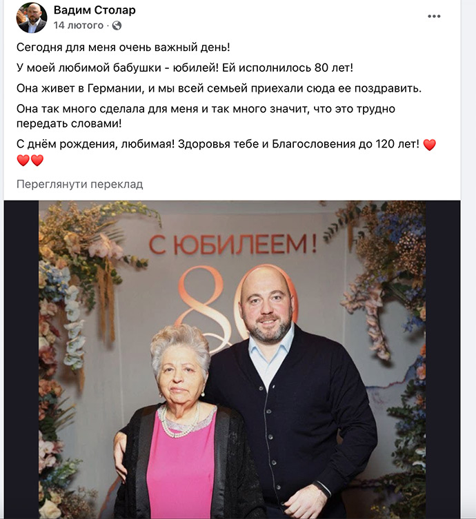 Тоді Столар пояснив поїздку родинним святом і навіть опублікував фото з бабусею, яка мешкає у Німеччині, в день її народження.