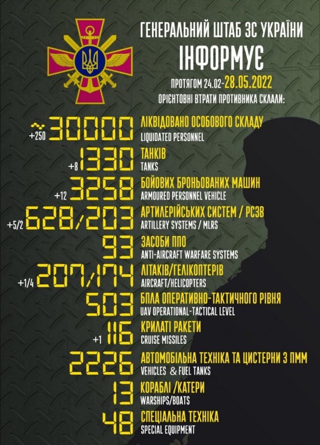 Збройні сили України з 24 лютого по 28 травня ліквідували близько 30 тисяч російських військових 🔥