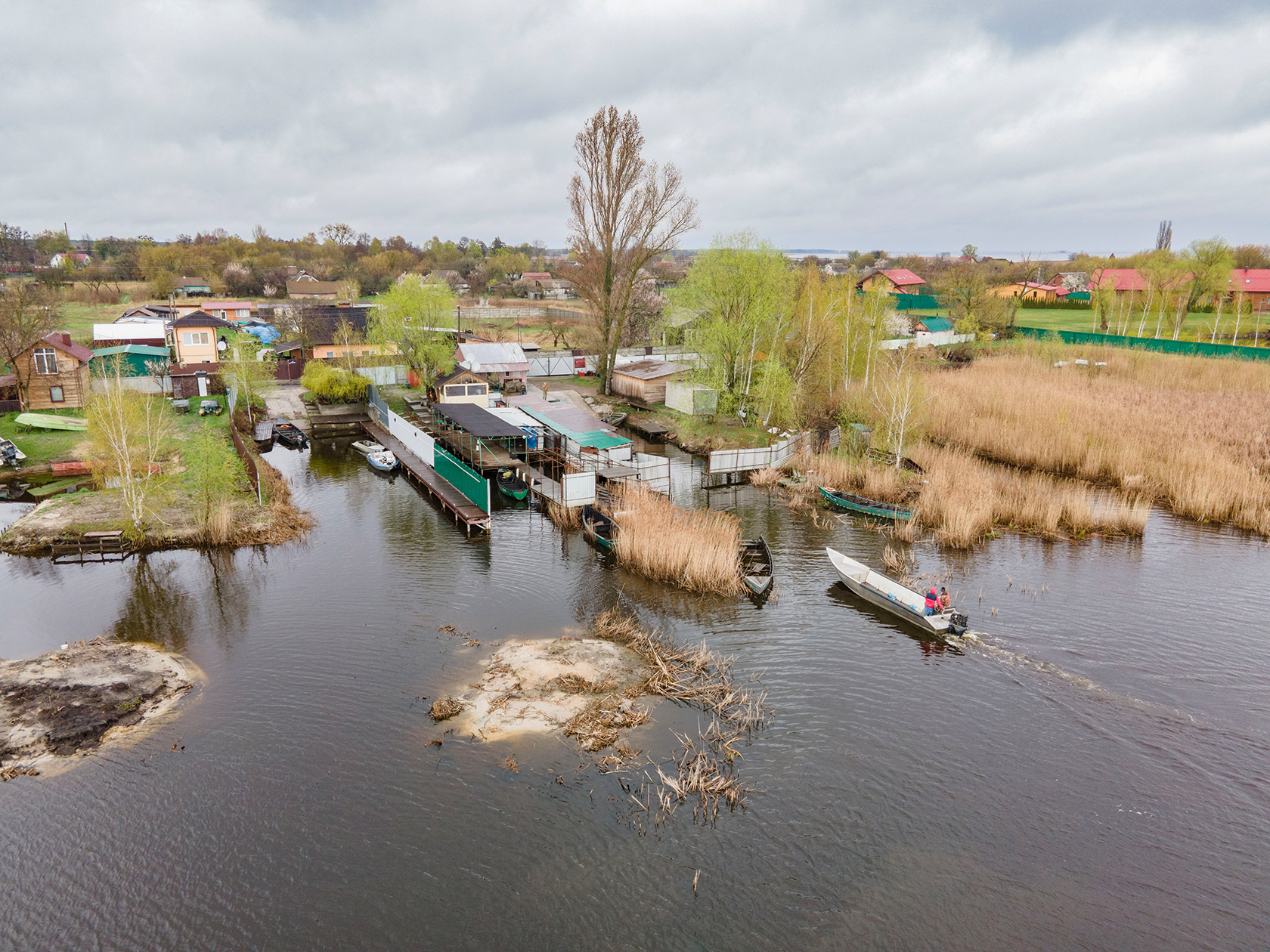 У березні на берегах Київського водосховища волонтери створили евакуаційні та гуманітарні пункти. За допомогою човнів кілька тижнів постачали в ізольовані села продукти. Вивозили у безпечні місця старих, жінок та дітей.