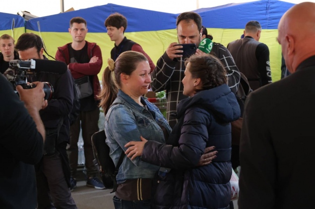 | Віце-прем'єр-міністерка Верещук зустрічає евакуйованих у Запоріжжі |
