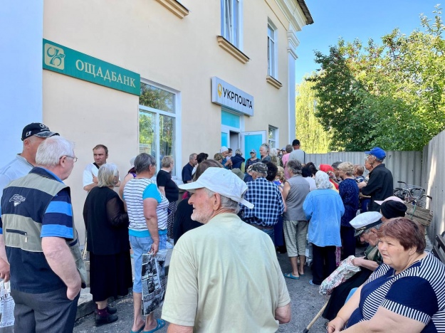 З 5-6 години ранку місцеві вишикувалися в чергу до відділення Укрпошти, щоб отримати пенсію.