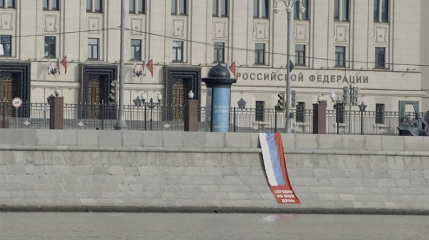 У Москві на День Росії перед міністерством оборони вивісили антивоєнний банер – "окривавлений" триколор із написом "Сьогодні не мій день".