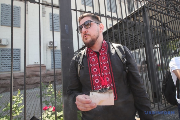 У Києві біля російського посольства відбулася акція "Останній день Росії", в якій взяли участь, зокрема, й громадяни країни-агресора. Один росіянин прийшов на захід у вишиванці і демонстративно спалив свій паспорт на знак протесту вторгнення Росії в Україну.