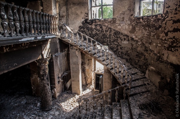 Так наразі виглядає Лисичанський міський палац культури на Луганщині – повністю випалений після російського обстрілу.