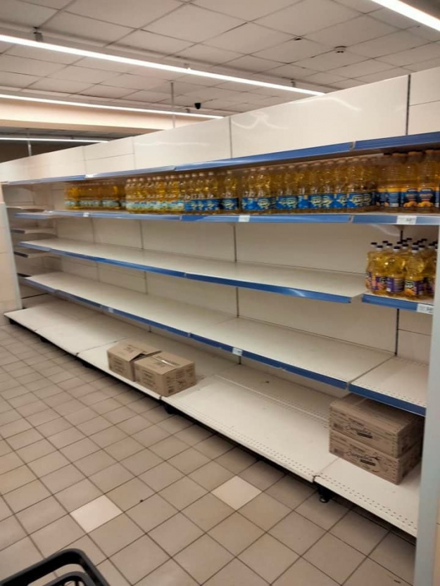 На фото – полиці магазину у Покровську Донецької області. За словами місцевої влади, у місті великі проблеми із постачанням продуктів харчування. Логісти не хочуть сюди їхати.