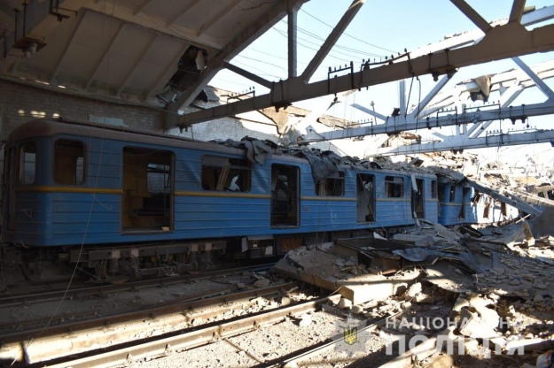 Пошкоджено дах, частково зруйновані стіни, вибиті віконні рами. Частково зруйновані вагони.