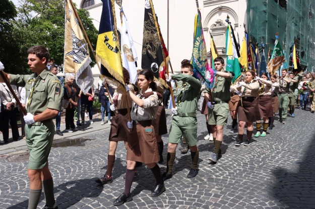 Пластуни в одностроях вимаршем провели друга "Курку" на "Вічну ватру", так українські скаути називають місце, куди відправляється душа пластуна після смерті.