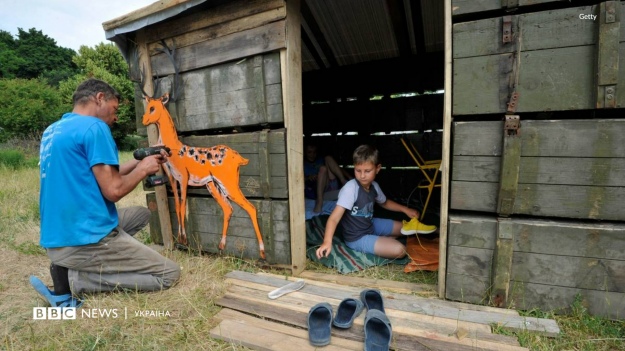 На Чернігівщині чоловік зробив іграшковий будиночок для дітей із ящиків для боєприпасів.
