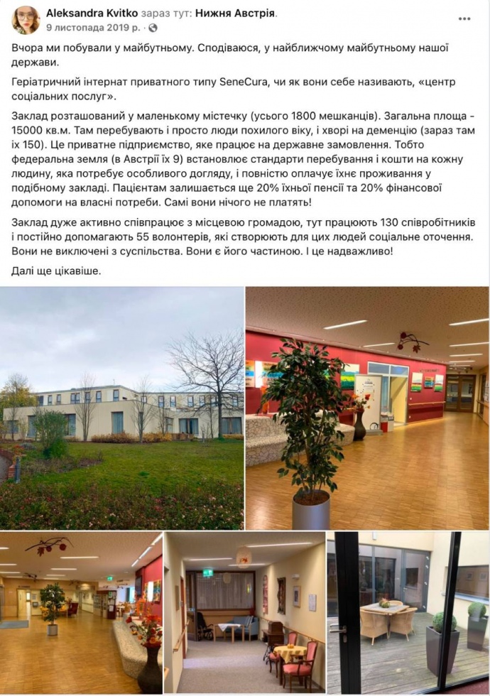 На її сторінці у facebook можна знайти пости за 2019 рік про поїздку в Австрію. Це був візит омбудсмена з України до європейських колег. І психолог без державної посади долучилась до візиту.